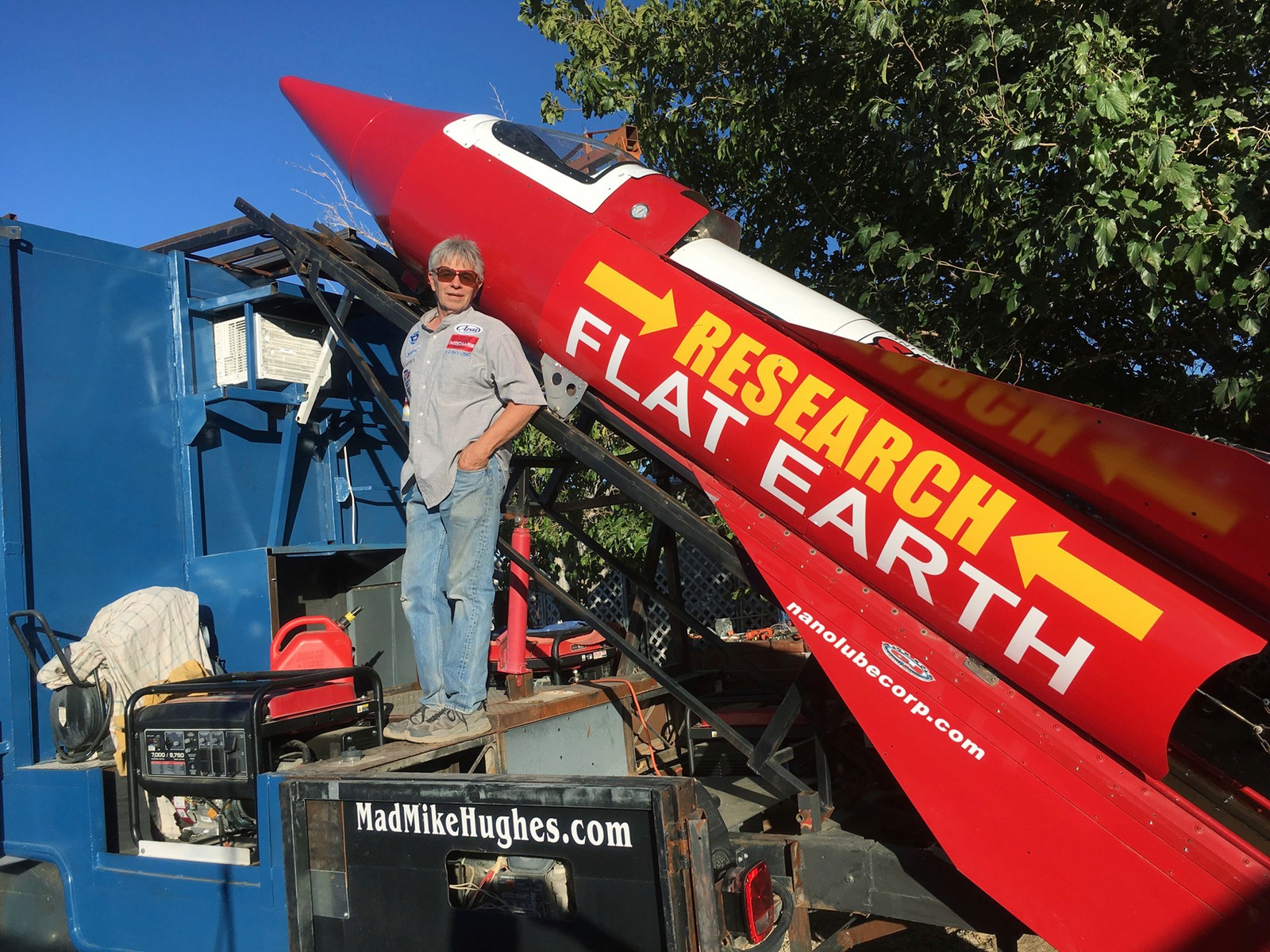 Hughes - que além de inventor e aventureiro é motorista de limusine- prometeu aos defensores da Terra Plana que ele vai "expor" a conspiração que, segundo ele, faz a Nasa esconder o verdadeiro formato do planeta.