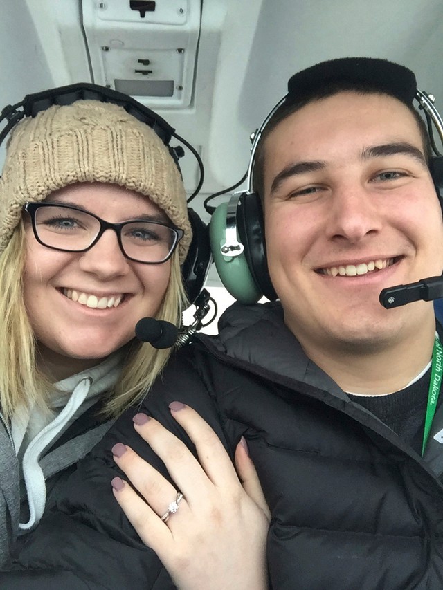Depois ele convidou namorada para um passeio de avião para ver a surpresa.