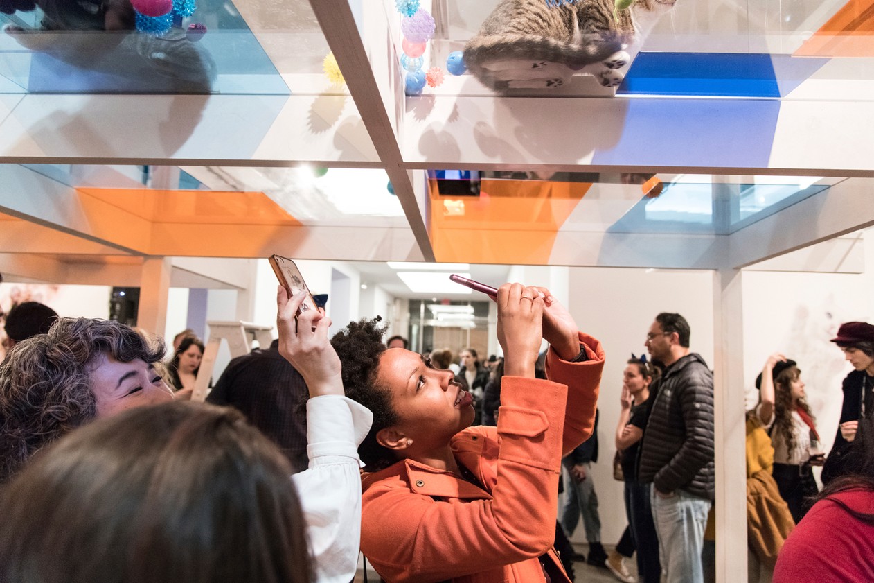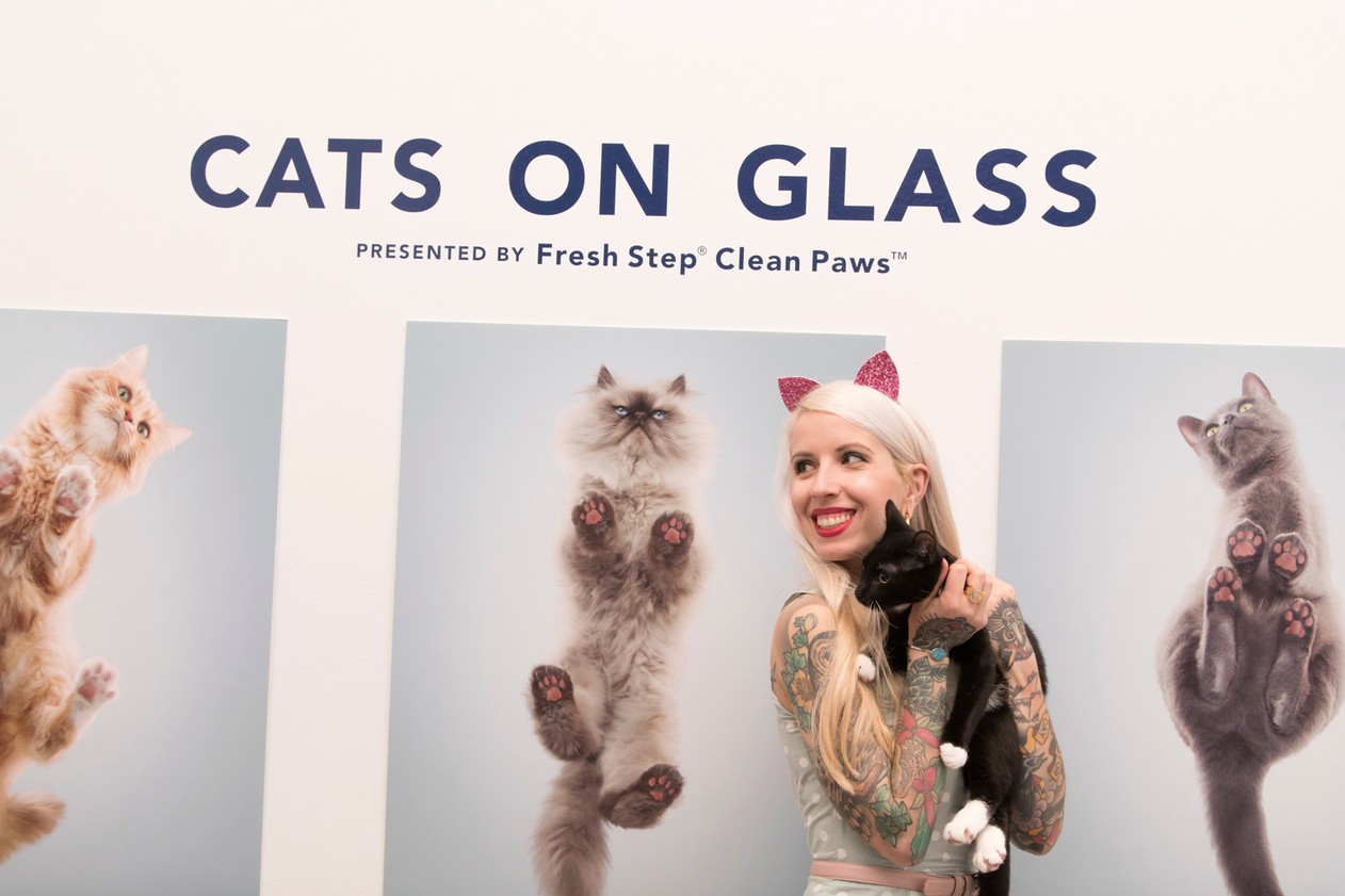 Uma exposição de "gatos no telhado de vidro" foi inaugurada em Nova York com o objetivo de exibir de maneira criativa gatos de rua que estão disponíveis para adoção.