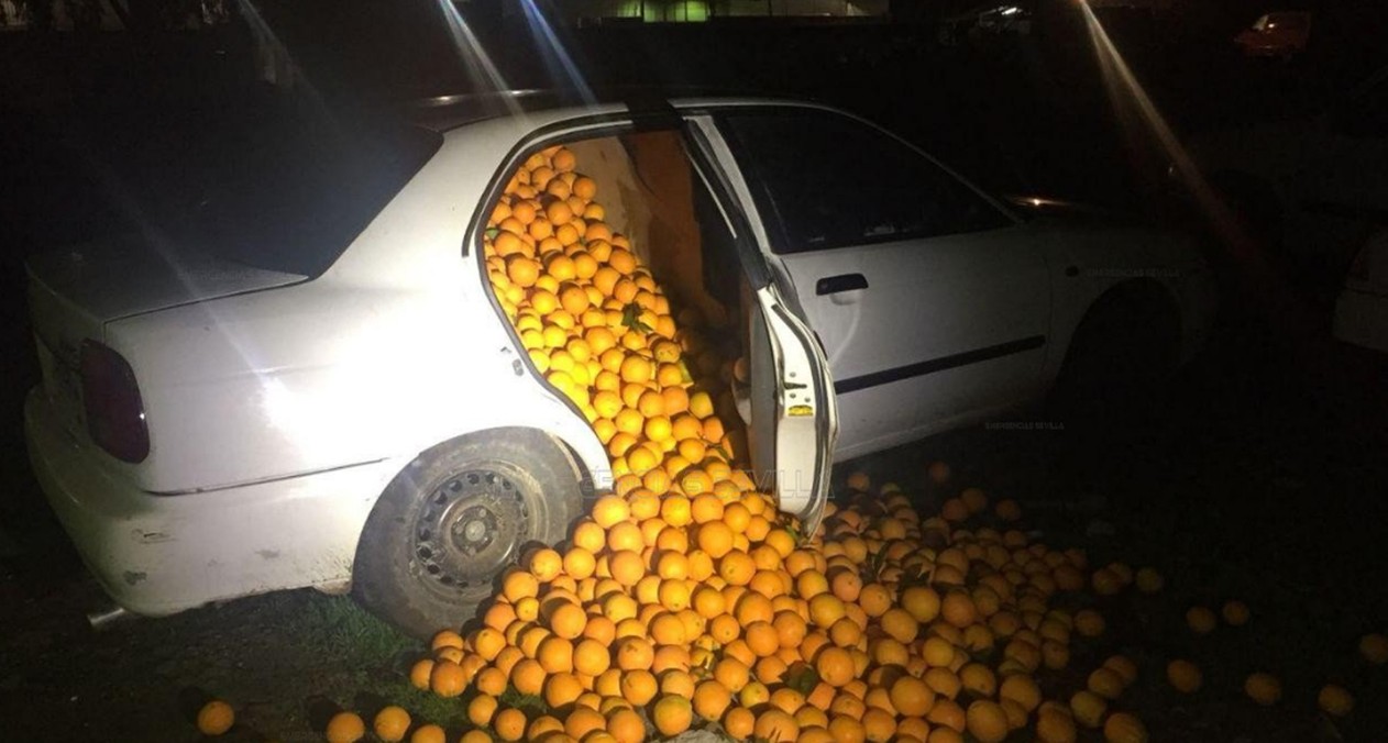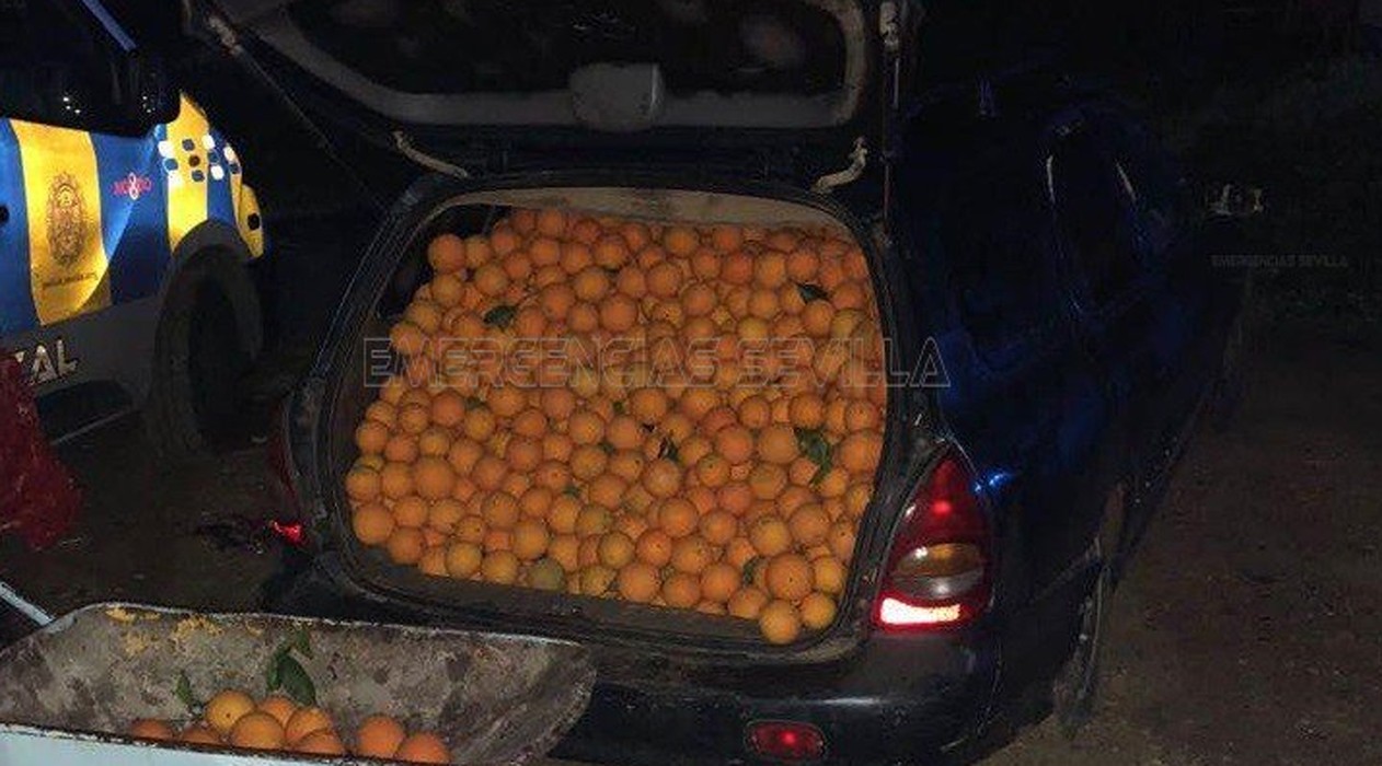 A polícia da cidade espanhola de Sevilha prendeu 5 suspeitos após uma perseguição a dois carros abarrotados de laranjas.