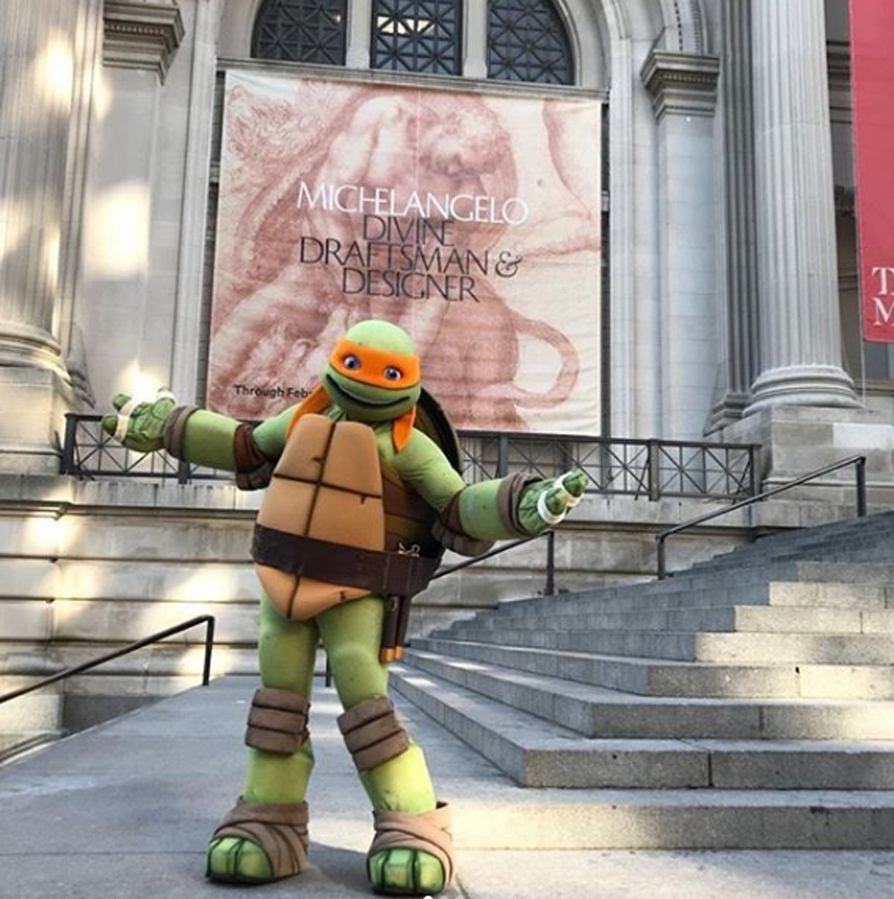 O Museu Metropolitano de Arte de Nova York "convidou" a tartaruga ninja Michelangelo a visitar a exposição do artista renascentista italiano Michelangelo Buonarroti.