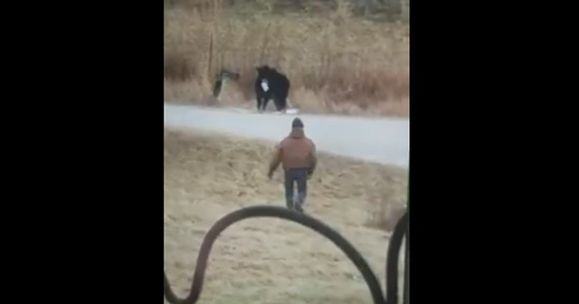 Erin Hudson, da cidade de Afton, postou o vídeo, que mostra a vaca comendo a correspondência enquanto seu marido corre para tentar impedi-la.