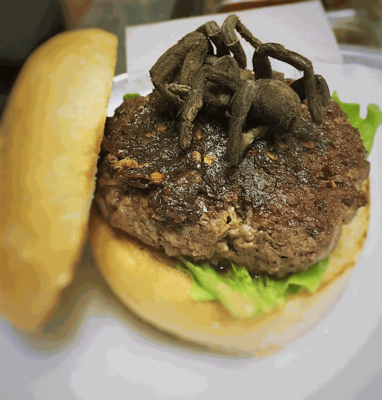 Um restaurante nos EUA gerou polêmica nas redes ao oferecer um hambúrguer com recheio de tarântula.