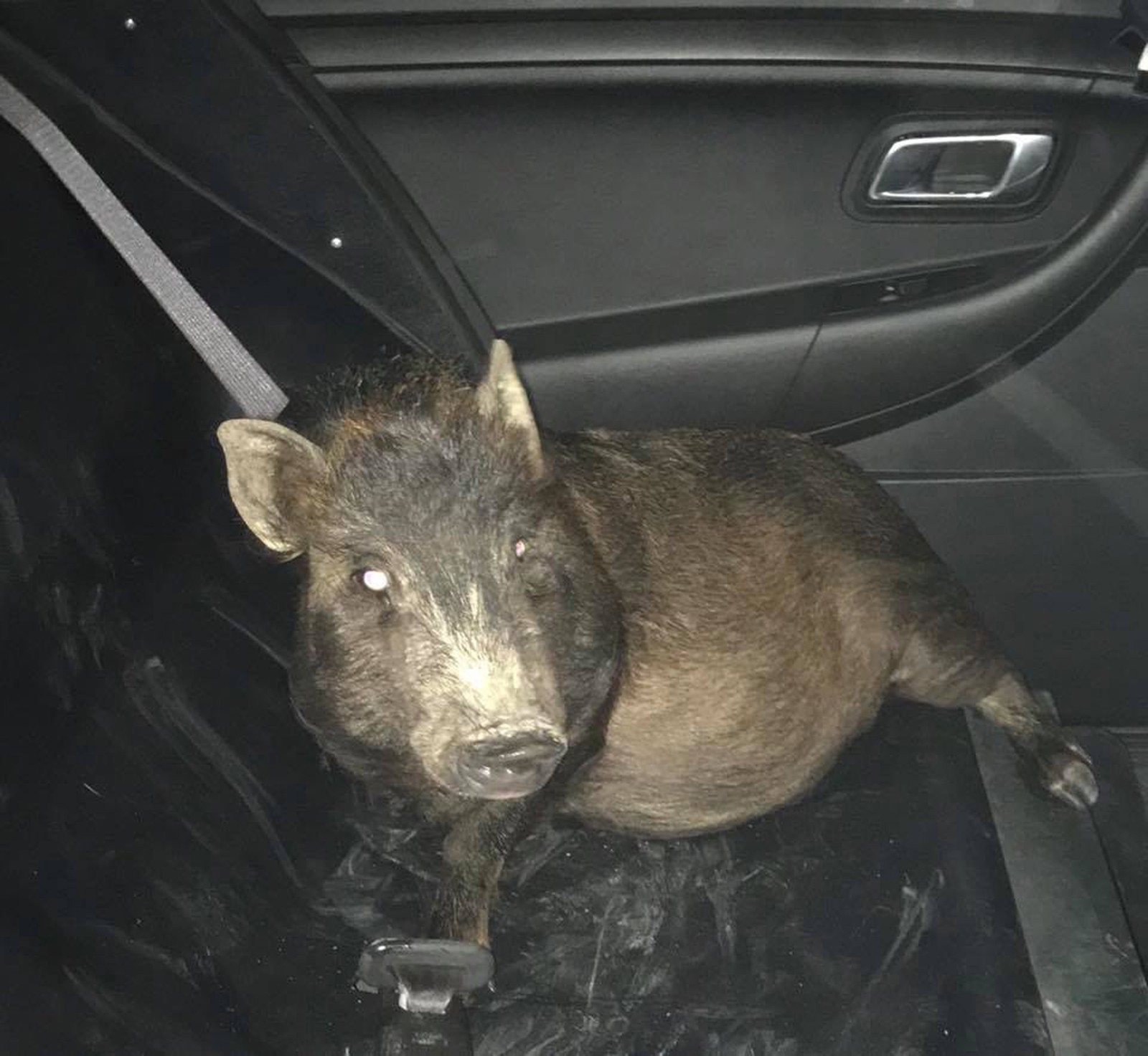 A princípio, os policiais pensaram que ele estivesse embriagado, mas eles constataram que ele estava "muito sóbrio" e realmente sendo seguido pelo suíno.